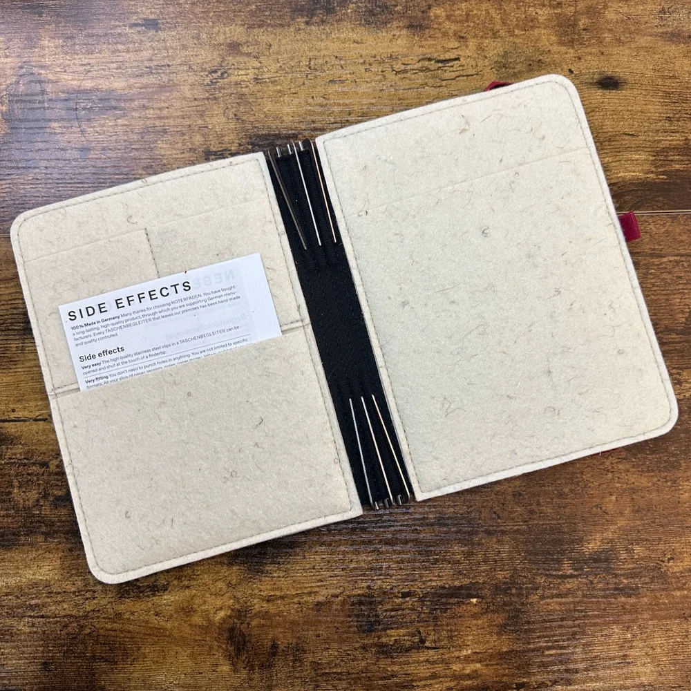 We’ve added a couple of new Roterfadens to the Roterfaden Shop page, including this Cognac leather cover with “Raw White” felt interior. (Model LTD_036)